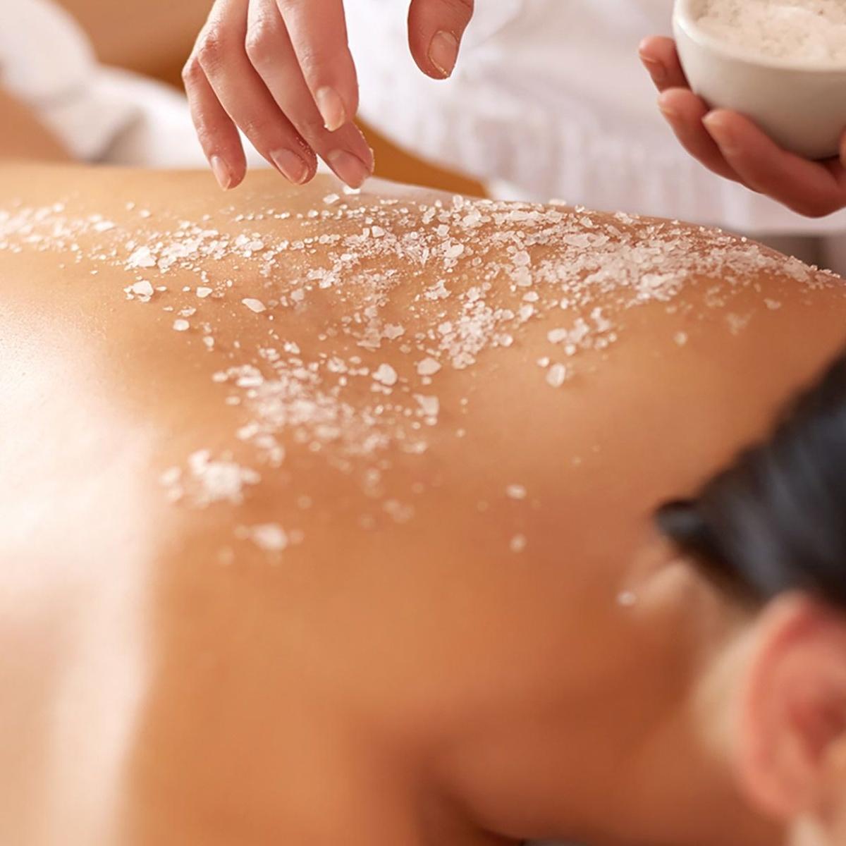 Парение оздоравливает, очищает и подготавливает к массажным процедурам. Скраб с гималайской солью мягко удаляет ороговевшие клетки. Мед смягчает кожу и усиливает кровообращение, стимулирует микроциркуляцию, придавая ровный тон и гладкость. Подходит для профилактики от мелких высыпаний или раздражений.